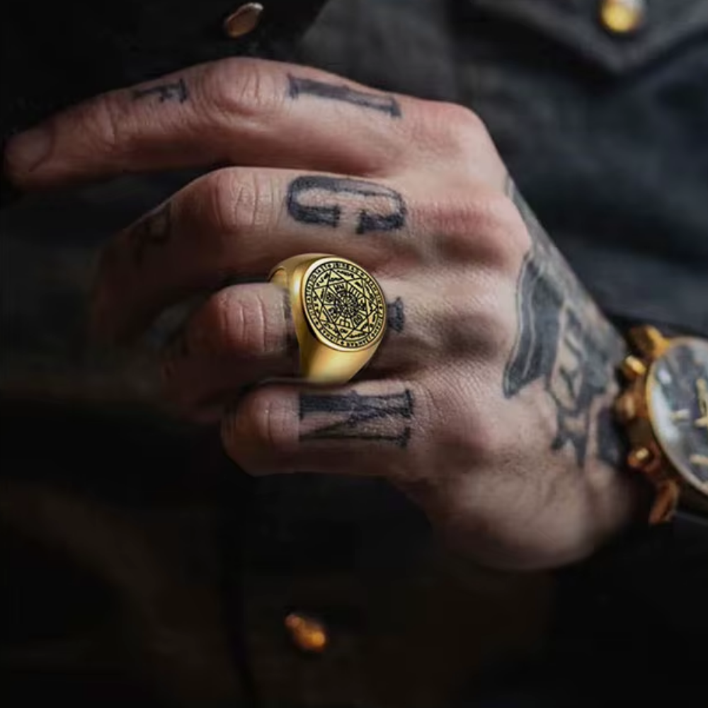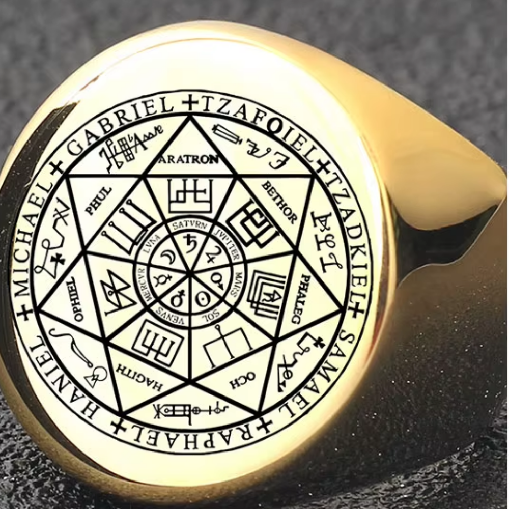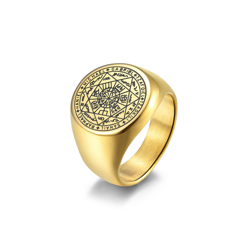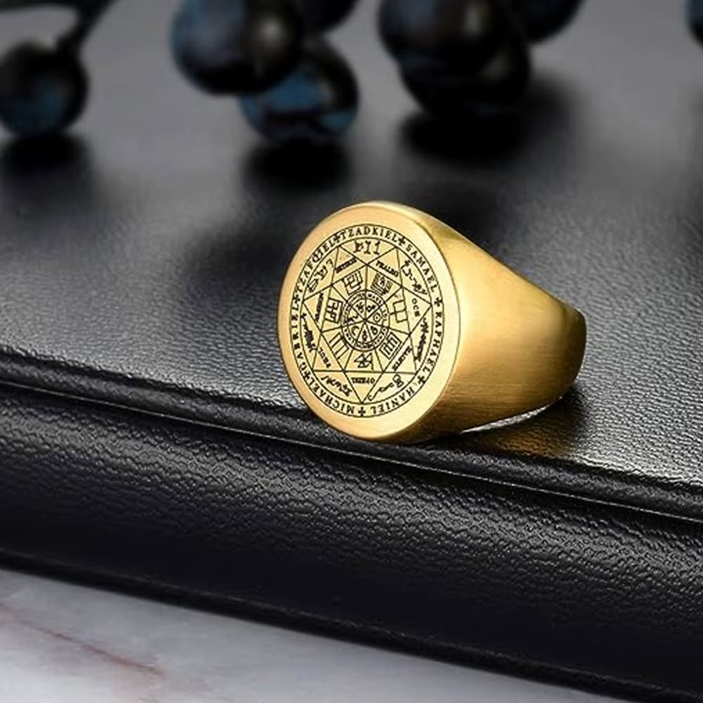 O Anel Arcanjos tem design marcante com o símbolos dos 7 arcanjos dando um tom de fé, junto a um acabamento de alto nível e um toque de exclusividade.