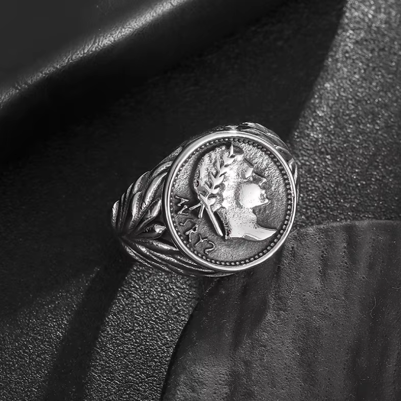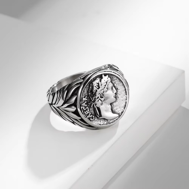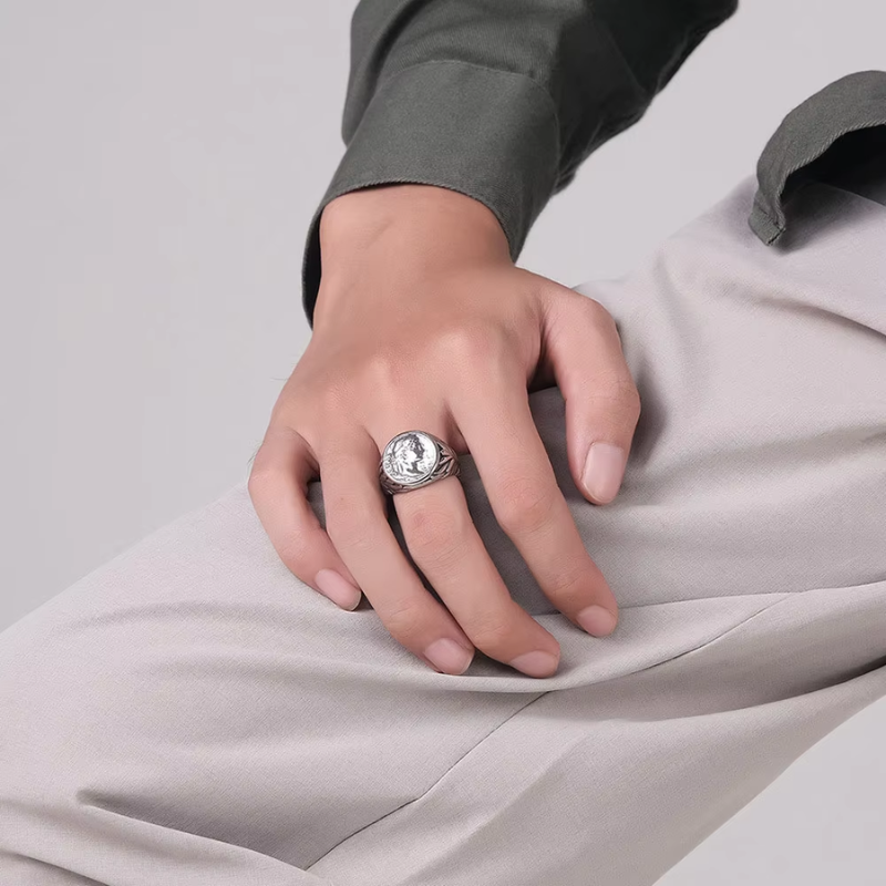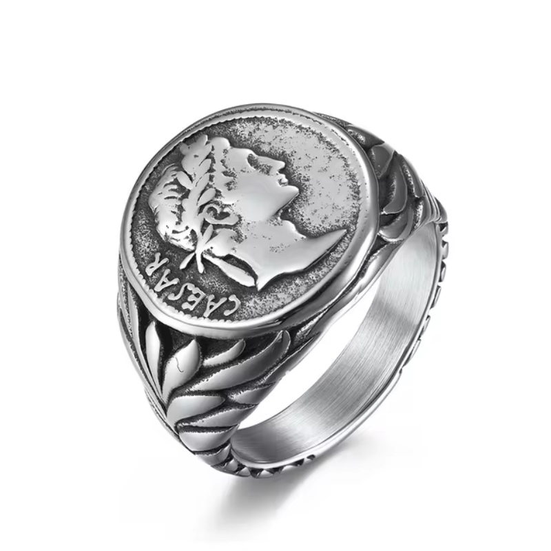 O Anel Caesar Prateado é forjado com aço inoxidável e possui o mais alto padrão de qualidade e sofisticação. O anel é feito em inox da mais alta qualidade.