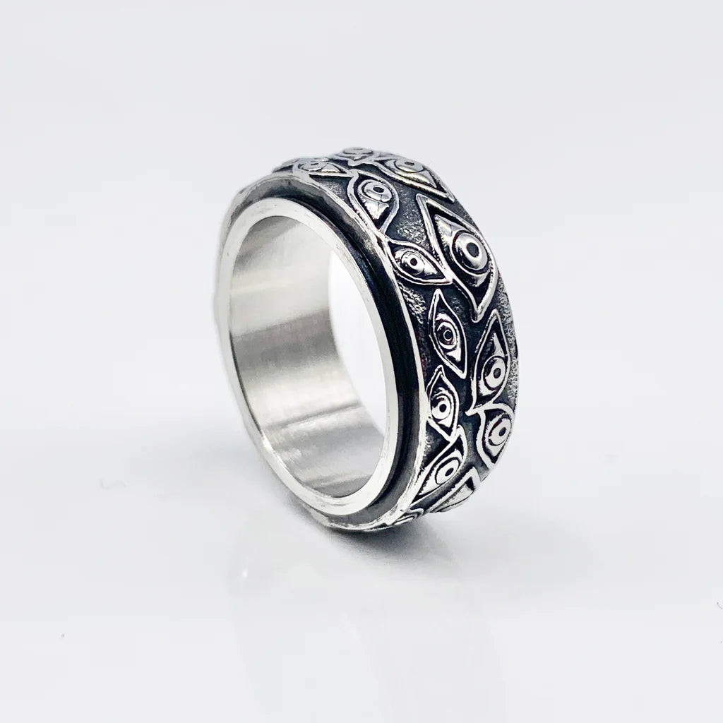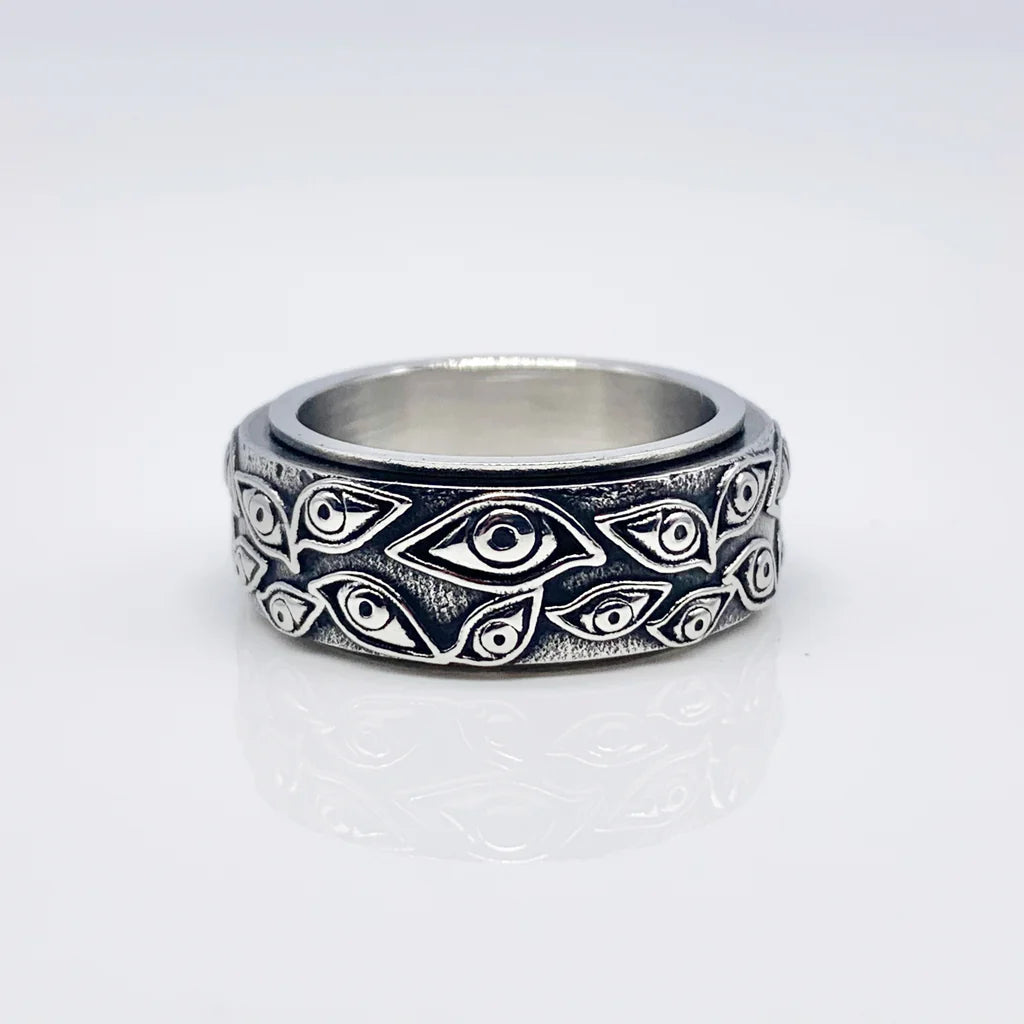 O Anel Horus é uma peça fascinante, com um design giratório e vários olhos esculpidos ao redor, simbolizando proteção e sabedoria. Uma combinação perfeita de misticismo e elegância.