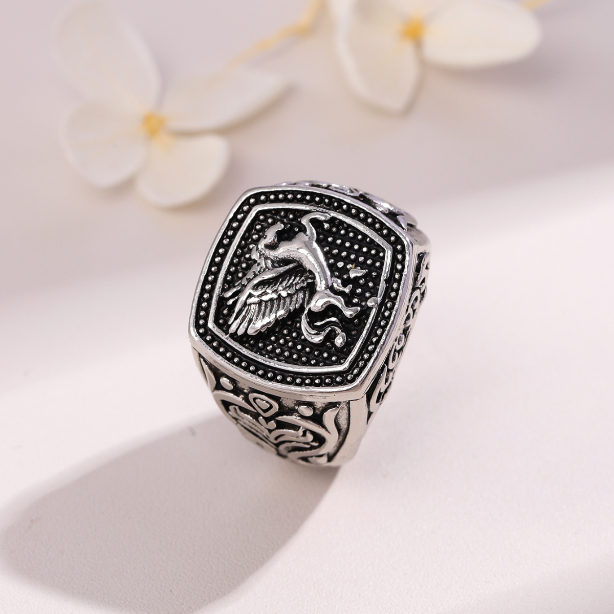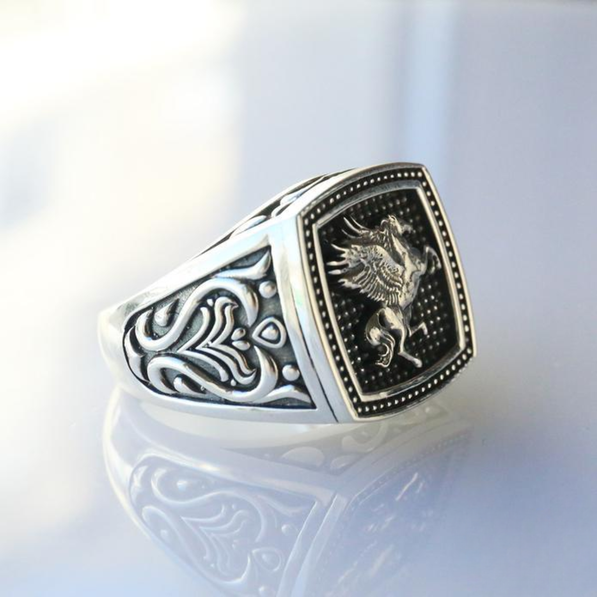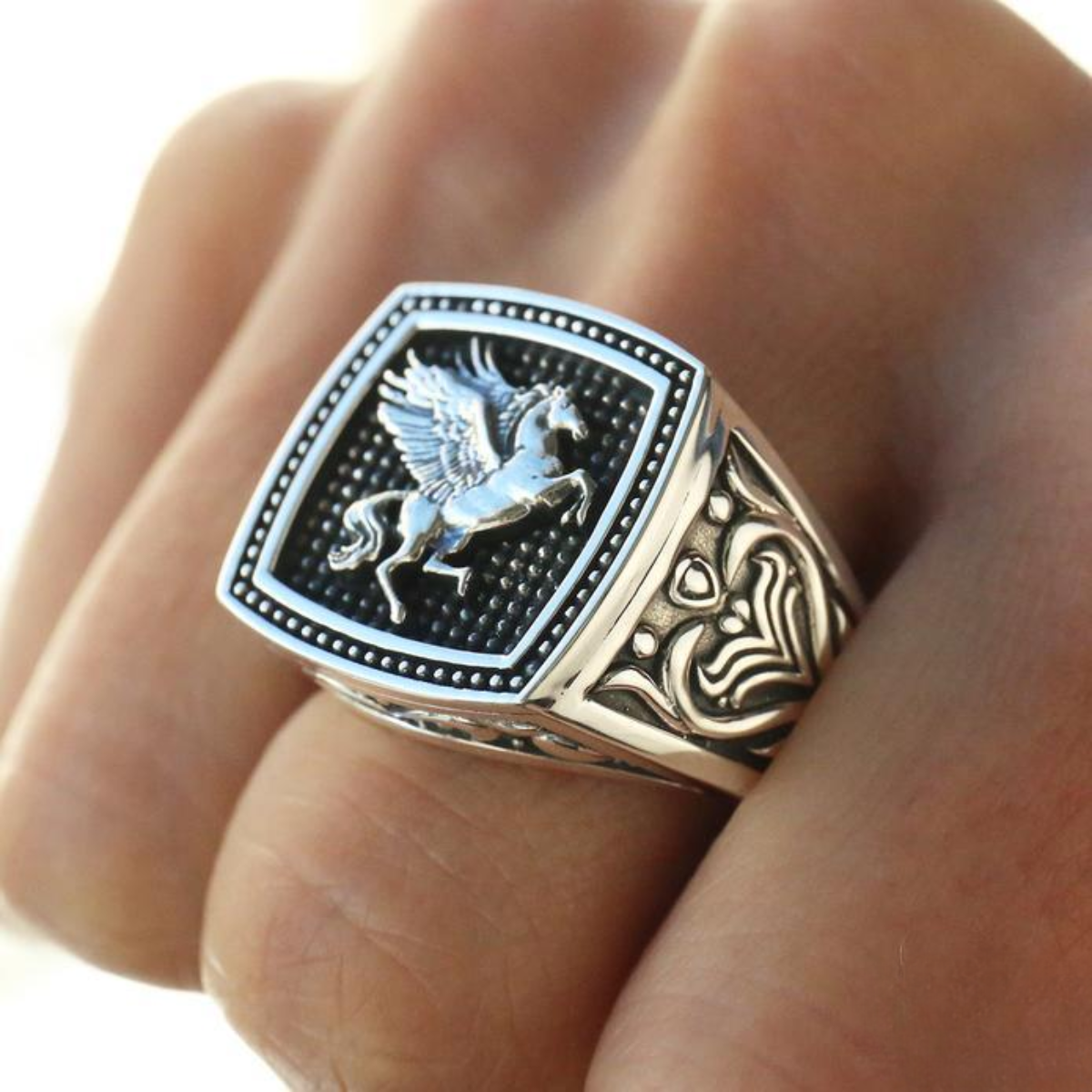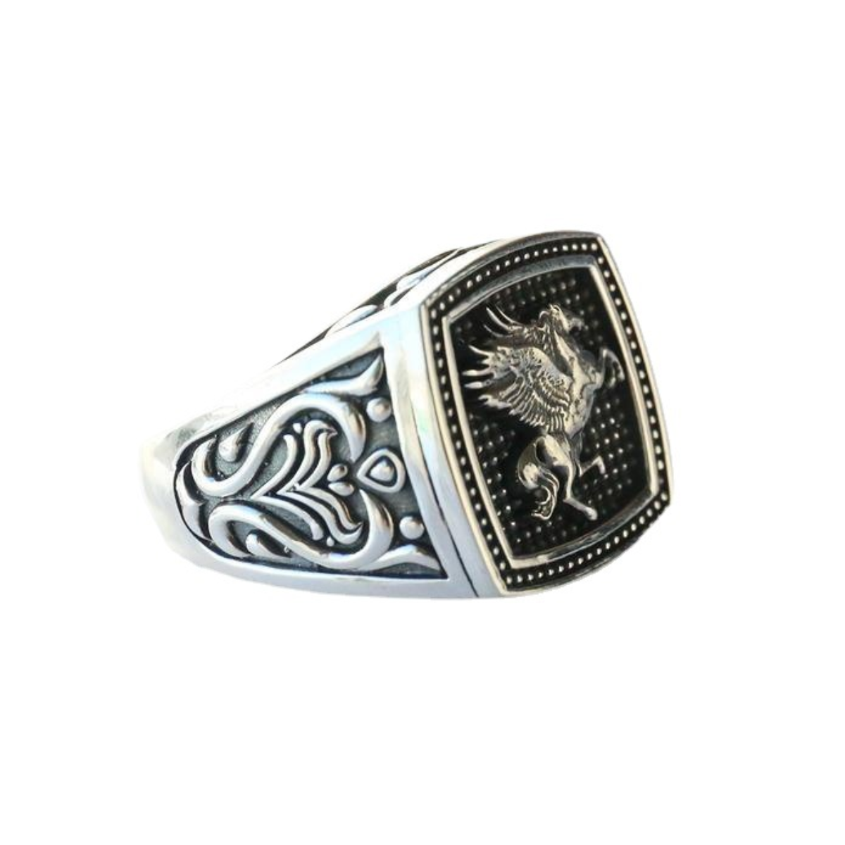 O Anel Pegasus tem design Inspirado no lendário cavalo alado, este anel une poder e liberdade em um design detalhado que exala elegância e personalidade.