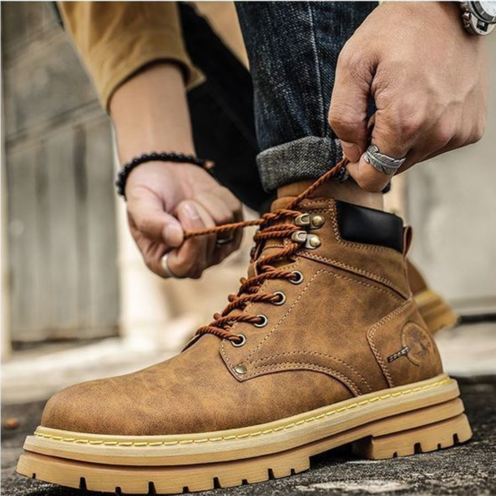 A Bota Militar de Couro é feita em couro de alta qualidade e possui design aventureiro, robusto e versátil, inspirado no estilo militar. Essa bota possui revestimento acolchoado em algodão e sola em EVA para garantir o maior conforto no uso diário.