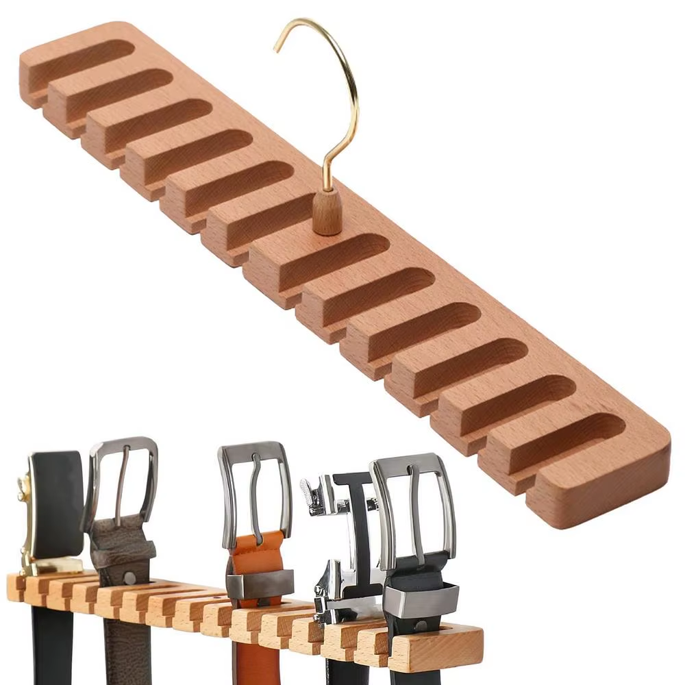 Mantenha seus cintos organizados com elegância. Este cabide de madeira combina sofisticação e praticidade, mantendo seus acessórios sempre à mão. Durável, compacto e estiloso, perfeito para o homem que valoriza a organização com classe.