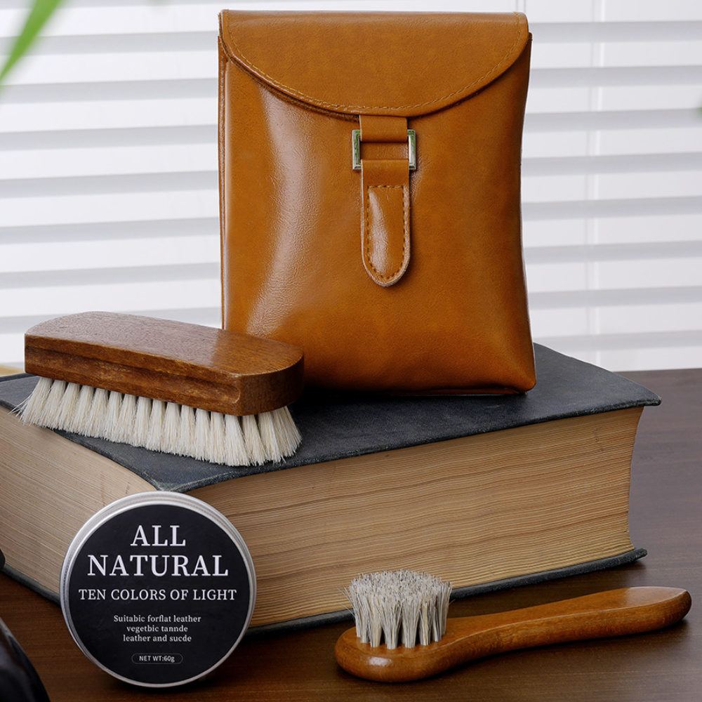 O cuidado completo para seus itens de couro! Este kit inclui um creme nutritivo, duas escovas de madeira com cerdas, uma flanela para polir e um estojo de couro PU. Hidratação, limpeza e brilho em um só conjunto.