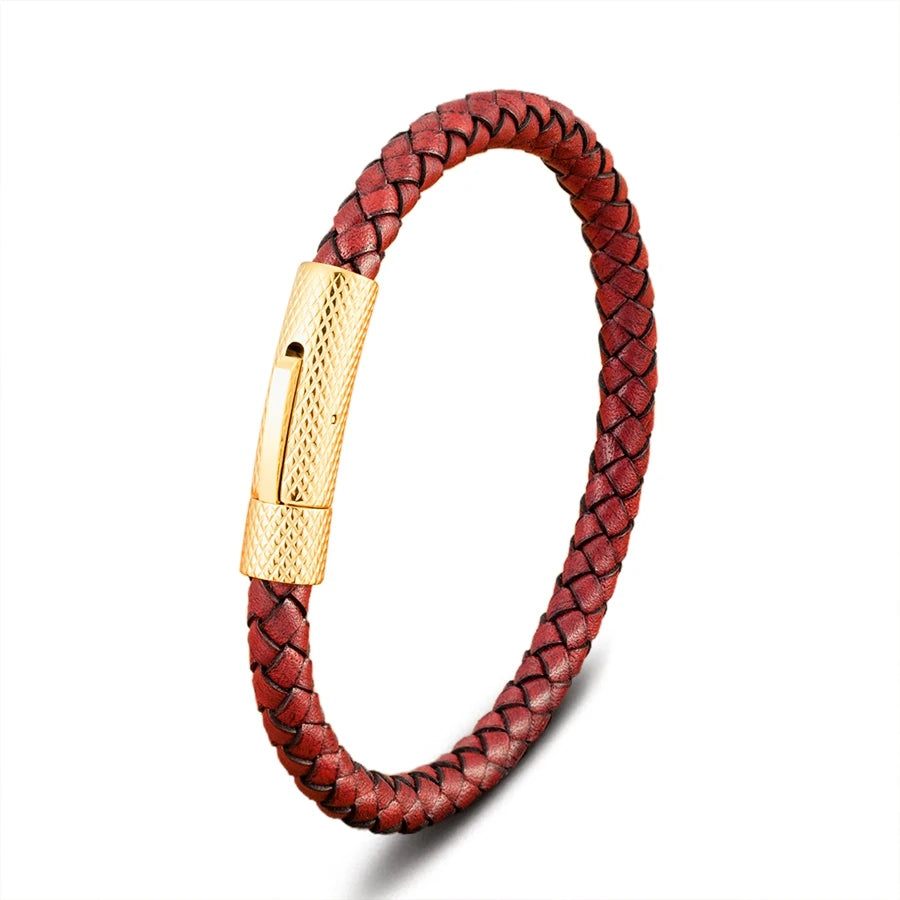Pulseira Charles em Couro - Vermelha e Dourada