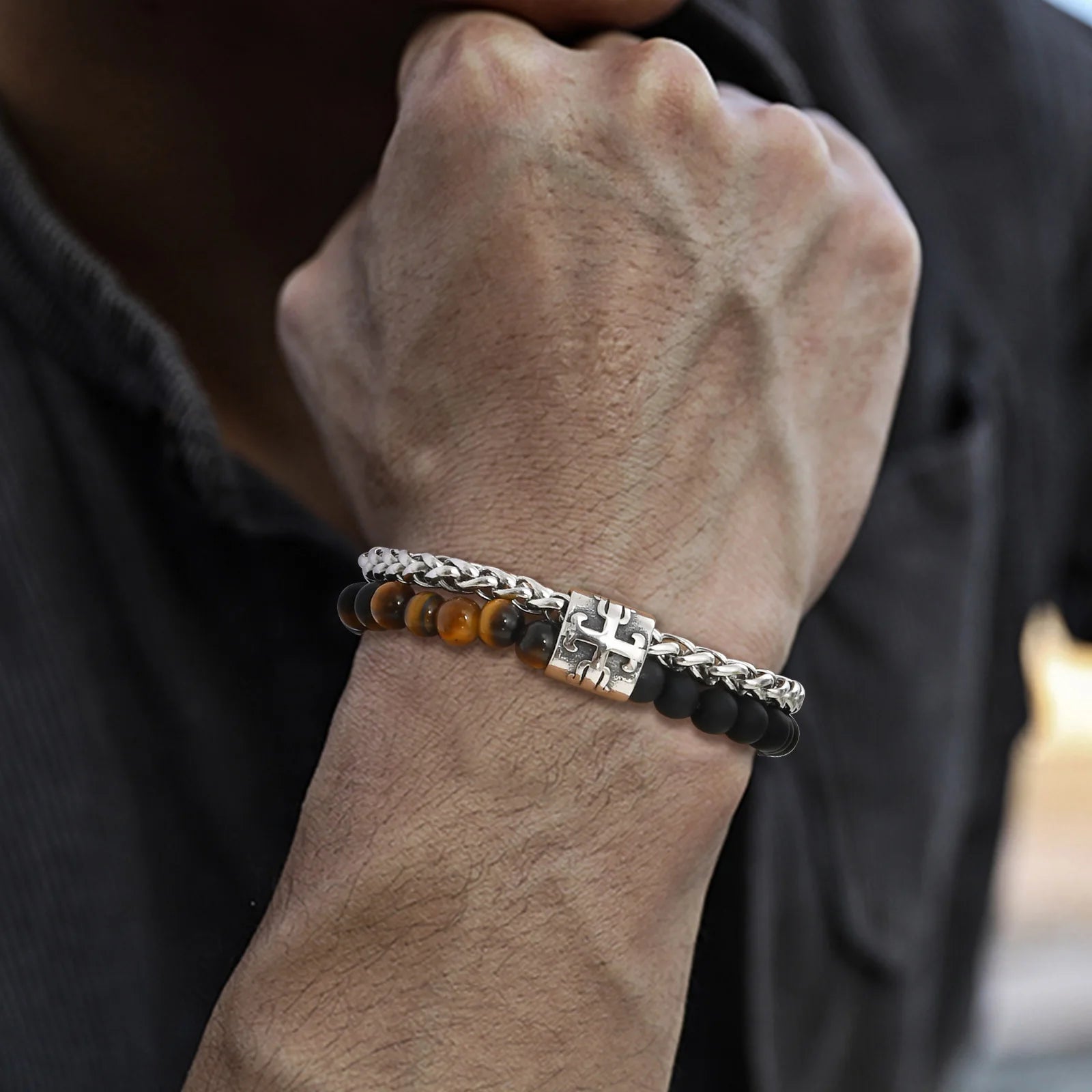 A pulseira Colton é uma versão sofisticada e incrementada, combinando pedras naturais mistas de luxo com uma camada dupla que inclui uma corrente em inox.
