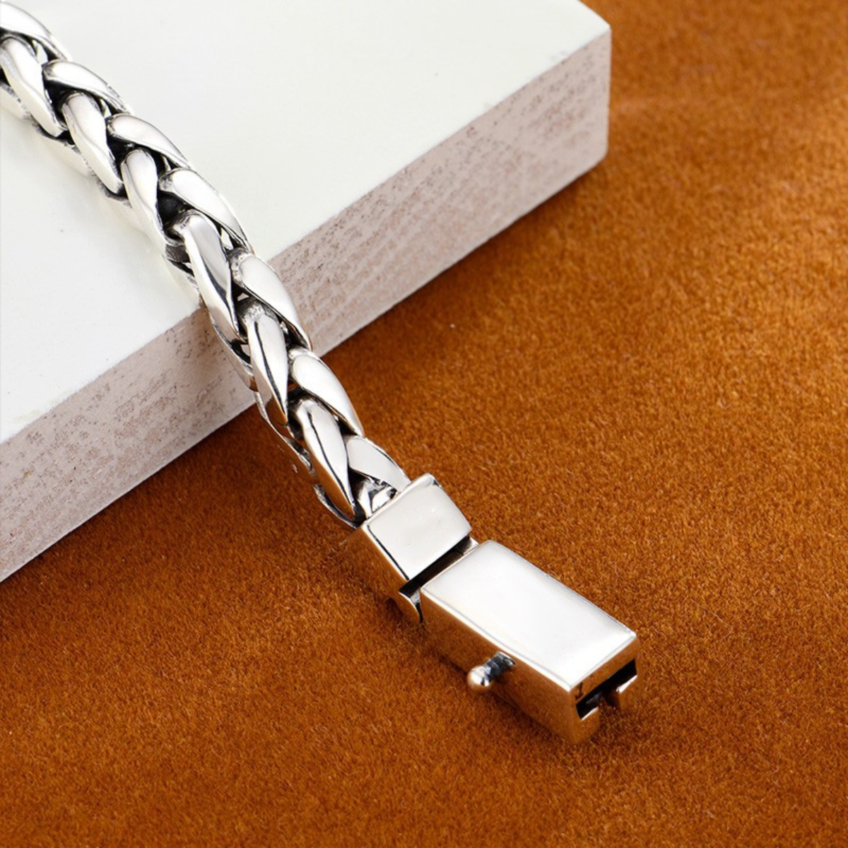 A Pulseira Nerion traduz poder e sofisticação em elos largos e polidos, com fecho ricamente ornamentado.