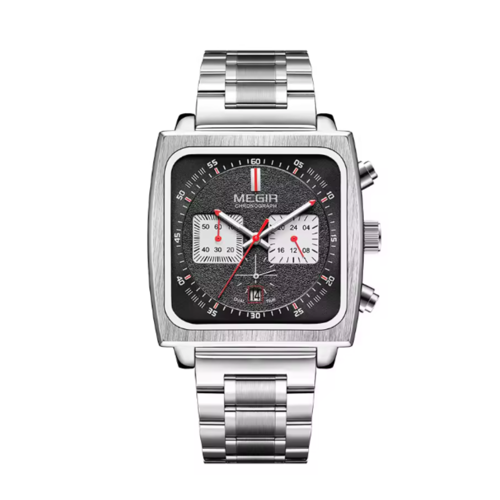 Relógio Megir Squared Black em Inox