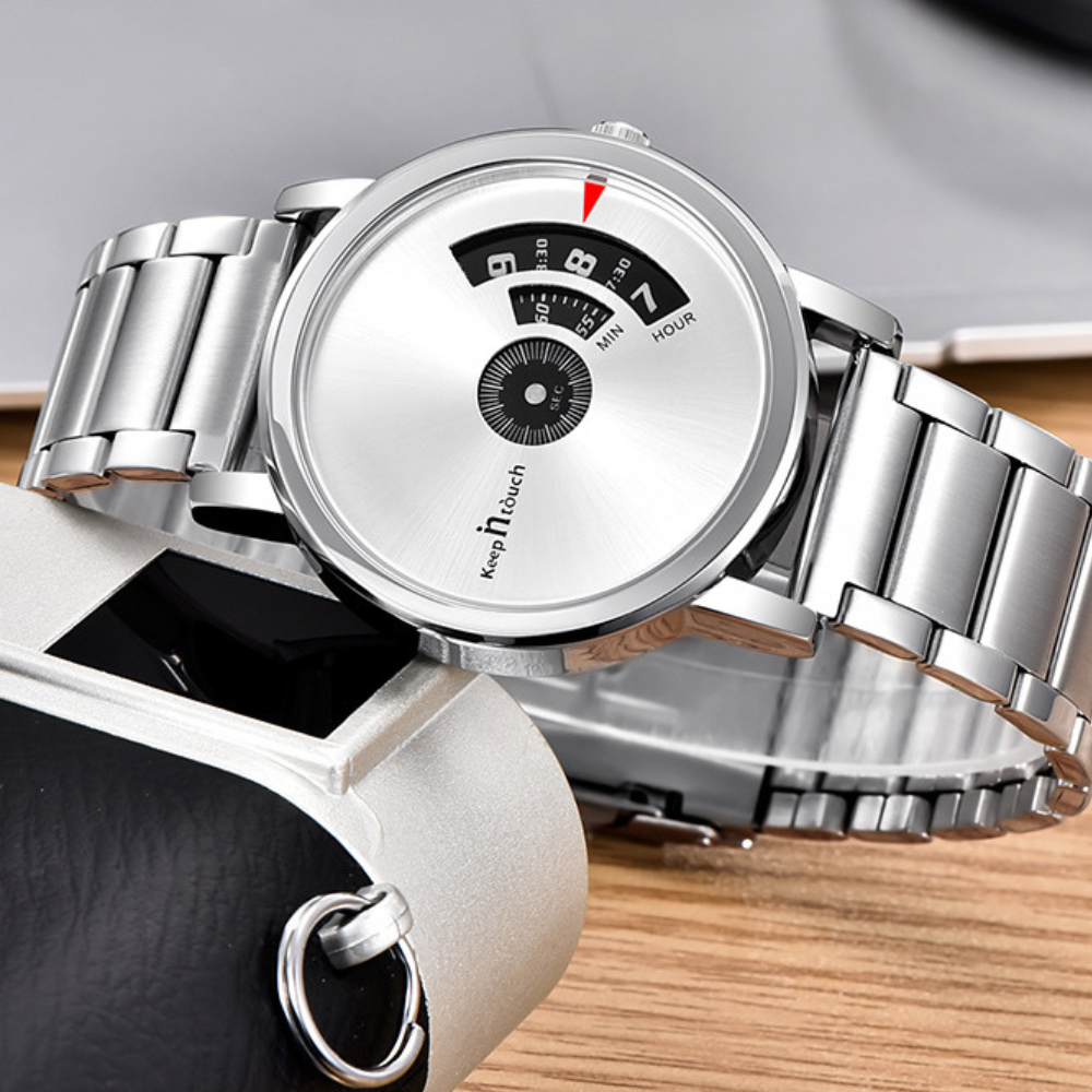 Relógio com design moderno único e exclusivo, sem ponteiros. Feito para homens de estilo moderno ao clássico, Combina com ocasiões mais casuais