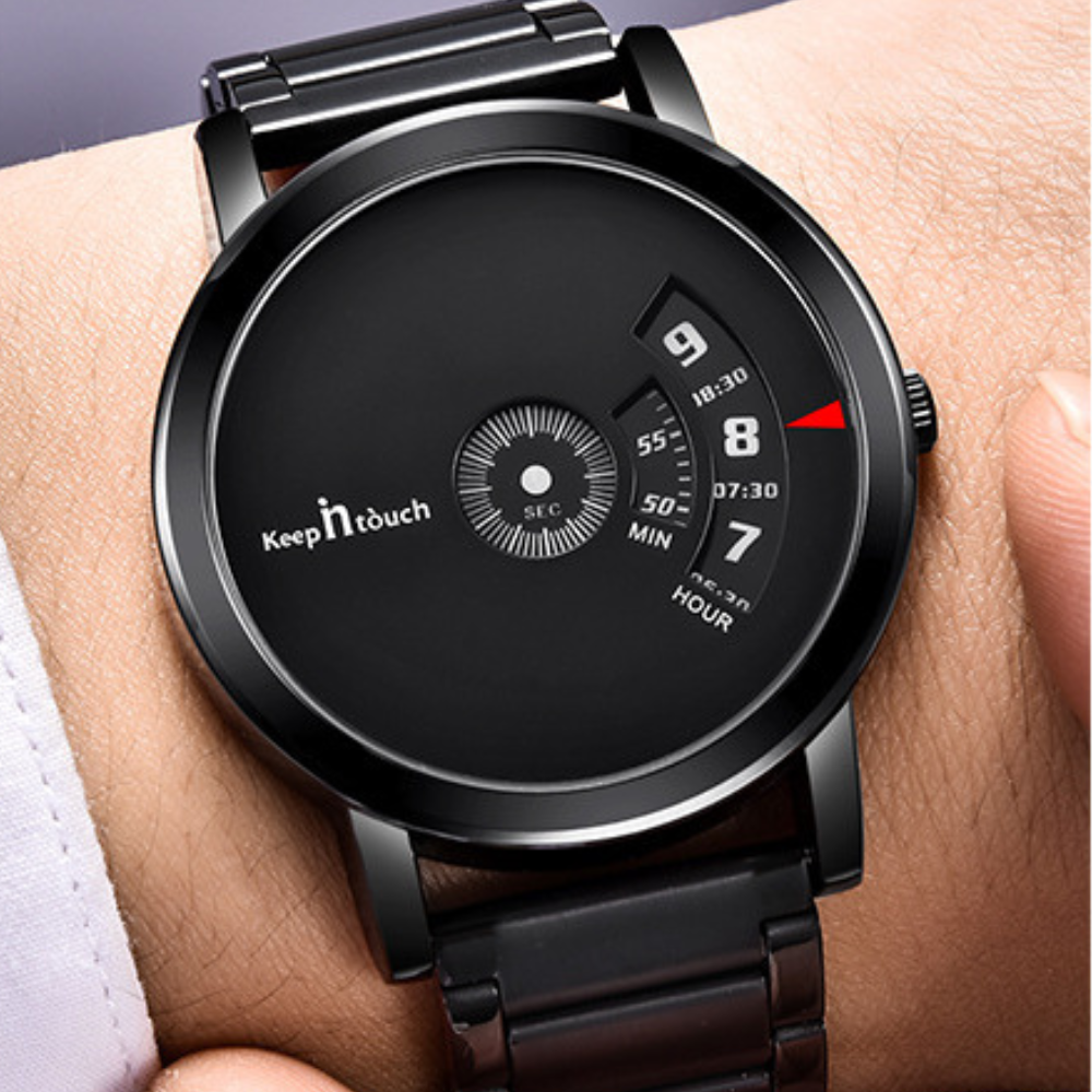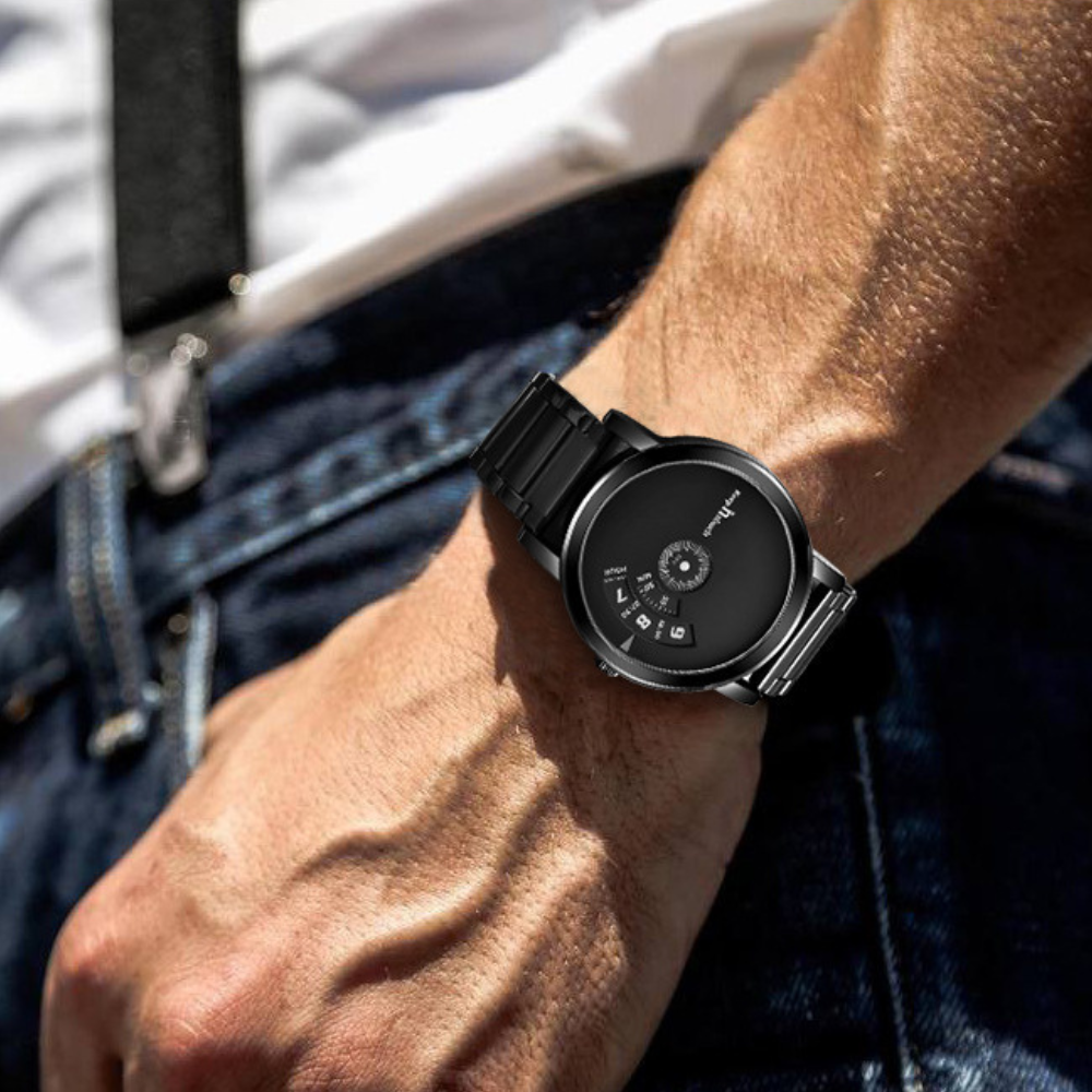 Relógio com design moderno único e exclusivo, sem ponteiros. Feito para homens de estilo moderno ao clássico, Combina com ocasiões mais casuais
