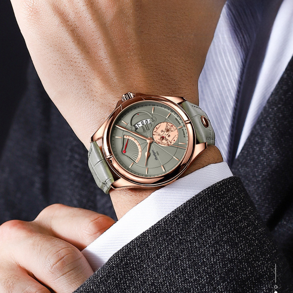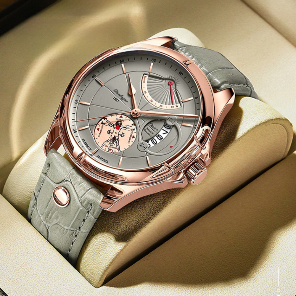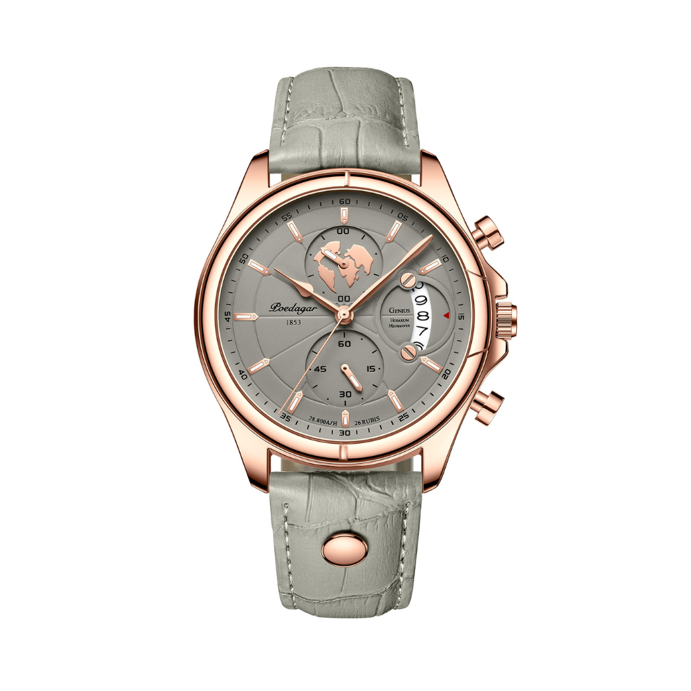 Relógio da marca Suiça Poedagar, com design multifuncional, função cronômetro e vidro de mineral fortificado