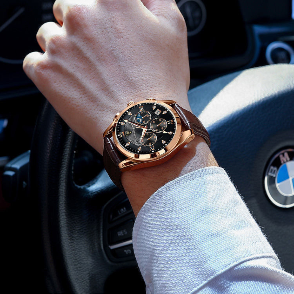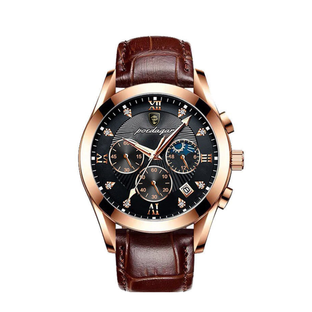 Relógio da marca Suiça Poedagar, com design multifuncional, função cronômetro e vidro de mineral fortificado